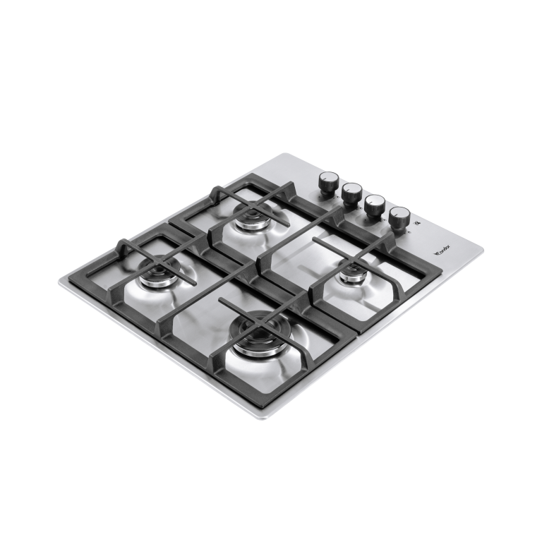 60 cm Hob, 4 Burners – Stainless Steel – Cast Iron Pan Support – Auto Ignition – Full Safety- Side Knobs