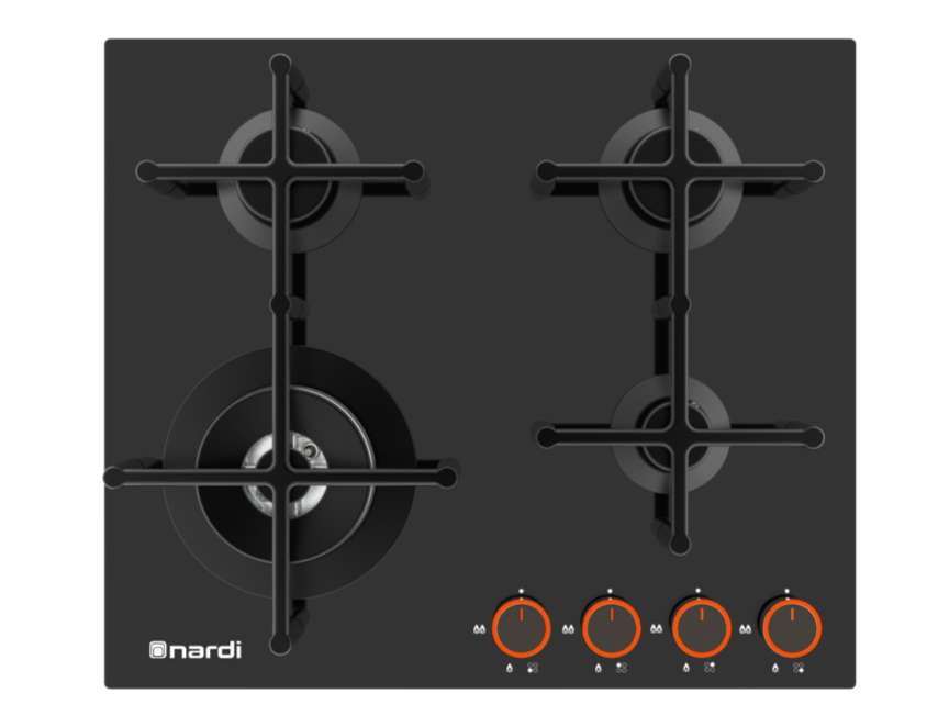 Nardi 60cm 4-Burner Built-In Gas Cooktop – Black Glass Series